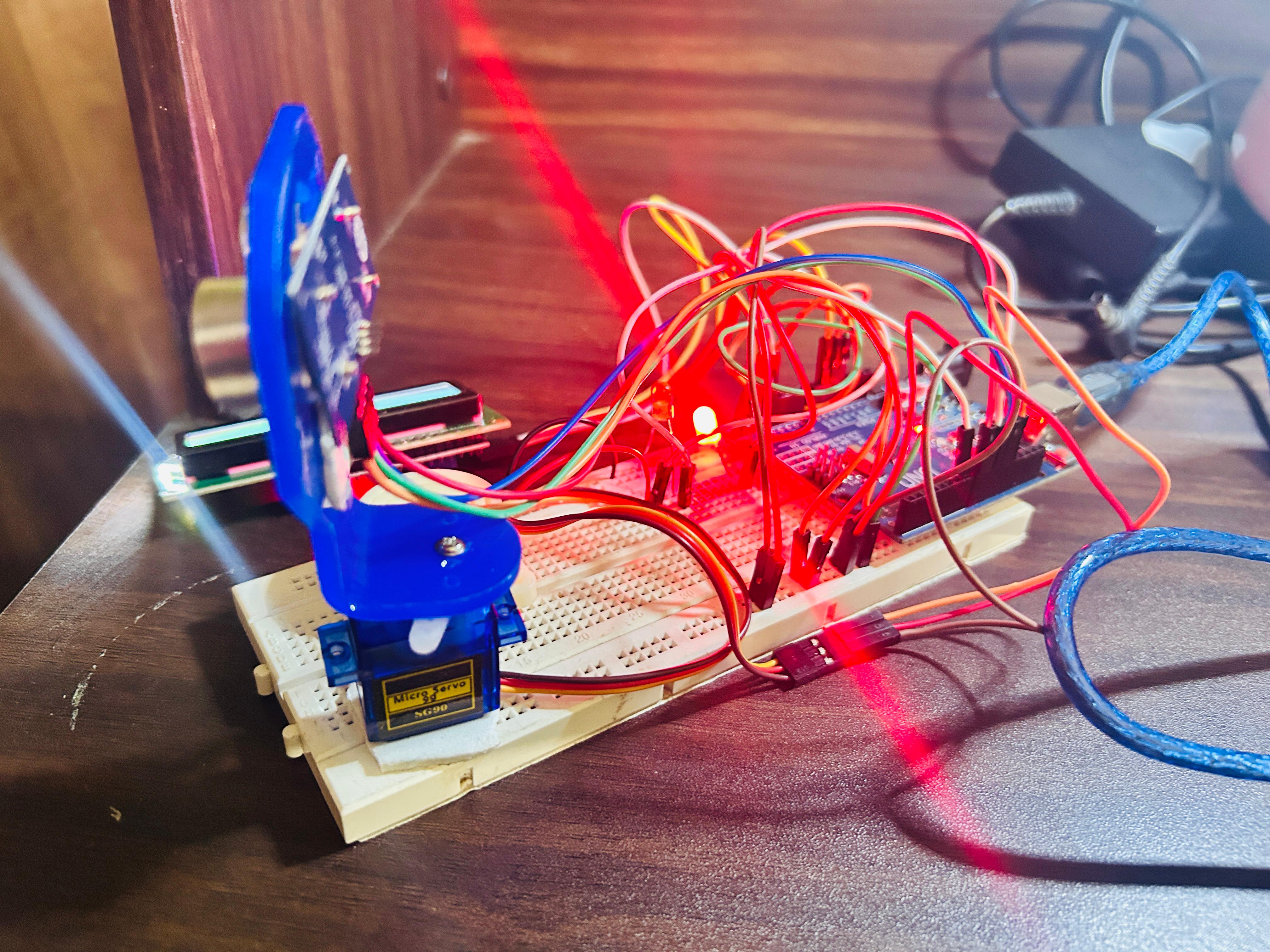 a constrained embedded sensing architecture that synthesizes acoustic ranging, angular actuation, and multimodal alert channels into a unified spatial-perception system.
